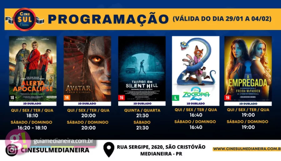 Programação Cine Sul Medianeira (29/01 a 04/02)