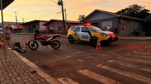 Um acidente de trânsito envolvendo uma caminhonete e uma motocicleta foi registrado na tarde deste sábado (4), por volta das 12h, na região do Portão Ocoí, em Missal.