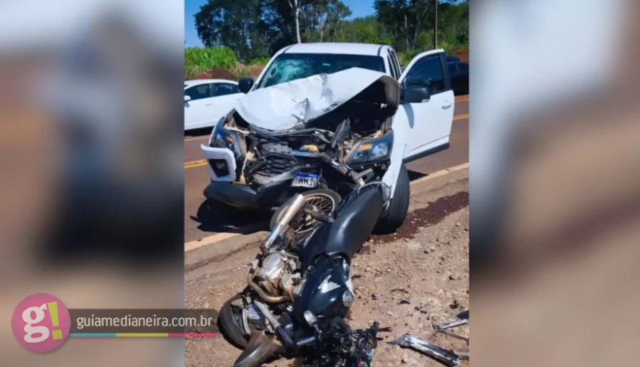 A batida aconteceu no sentido ao município de Medianeira. De acordo com informações preliminares, o motorista da caminhonete é morador da comunidade de Portão Ocoí, enquanto o motociclista reside na Linha Bandeirante.
